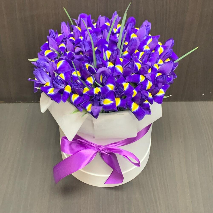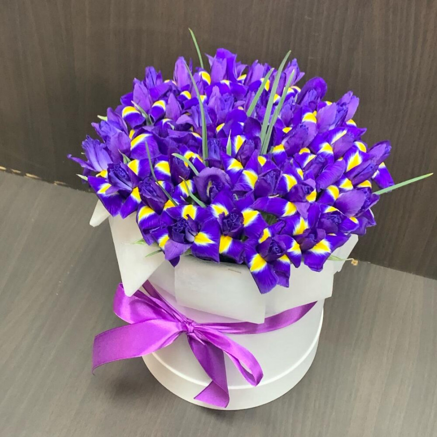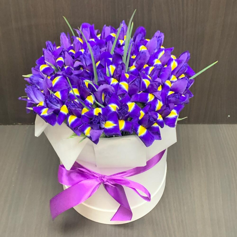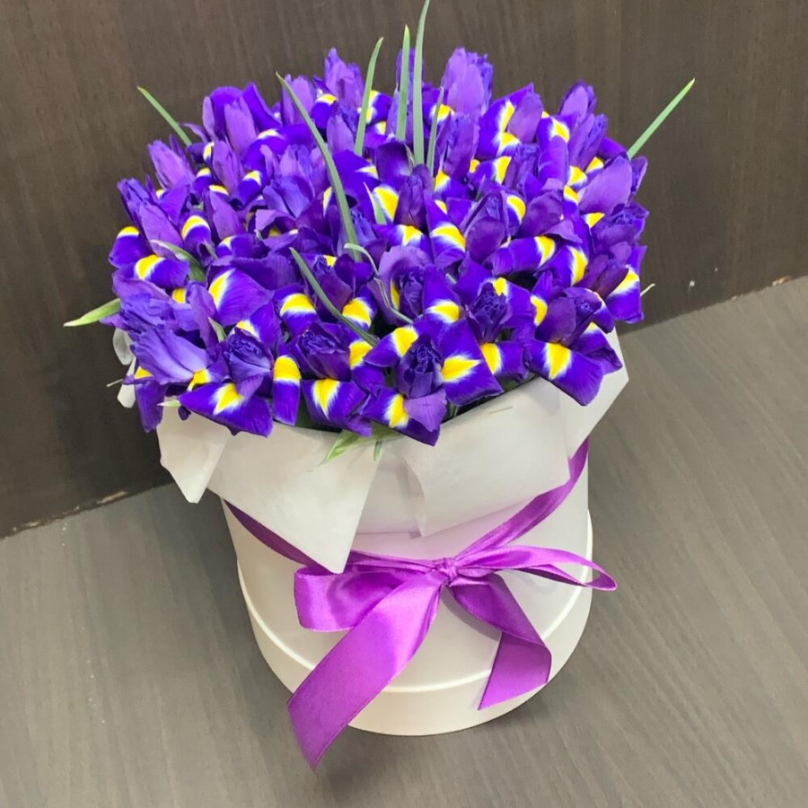 51 фиолетовый ирис в шляпной коробке в Елабуге