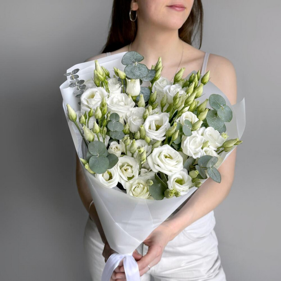 Букет из 7 белых эустом и эвкалипта в Елабуге
