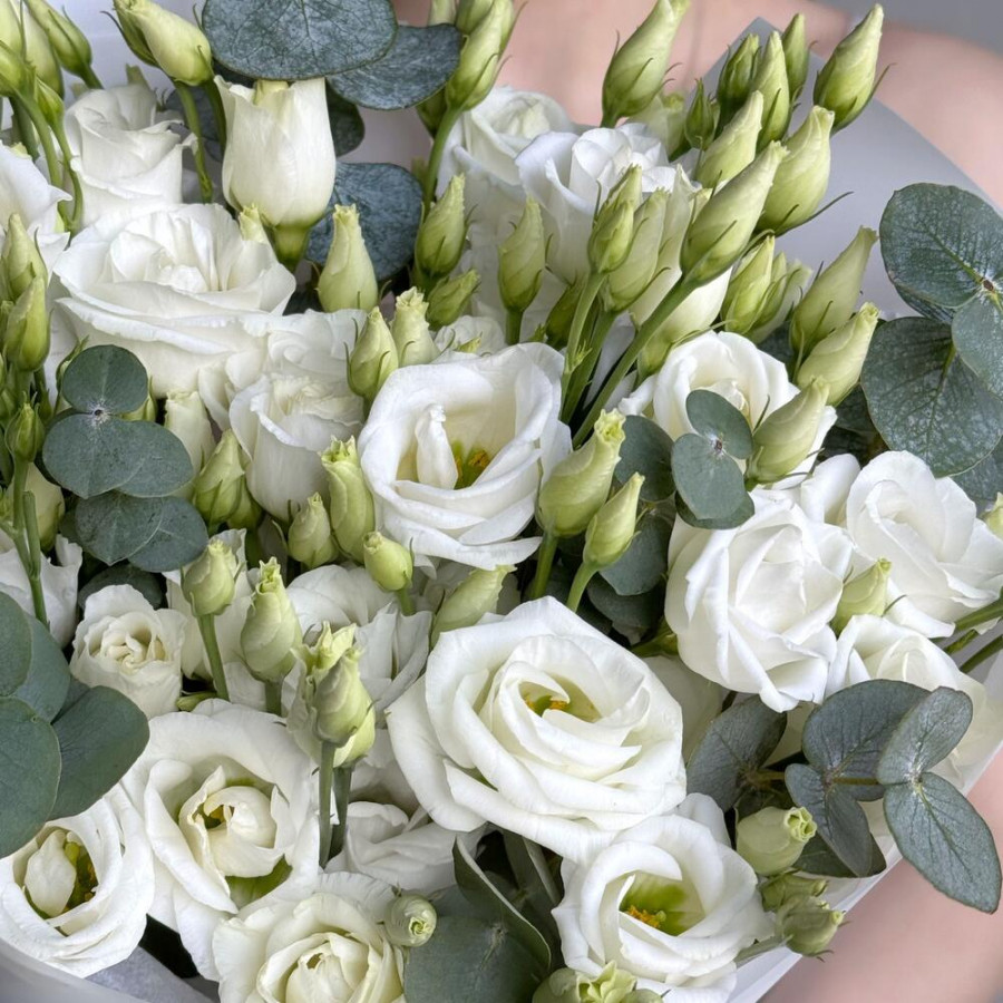 Букет из 7 белых эустом и эвкалипта фото 4
