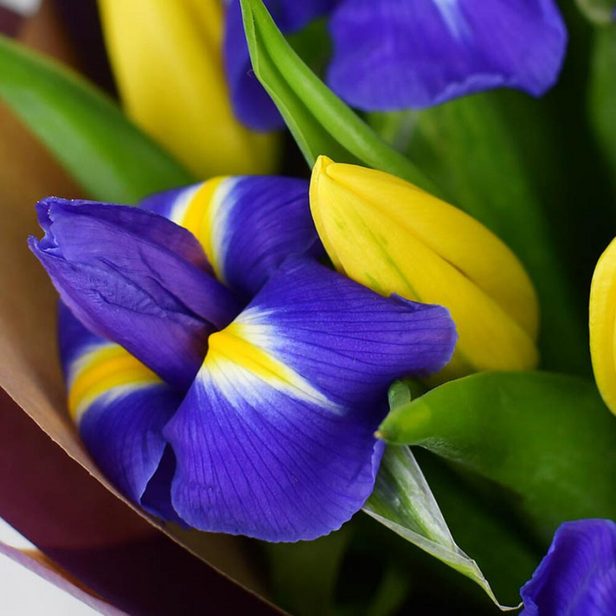 Букет из синих ирисов и желтых тюльпанов в Елабуге